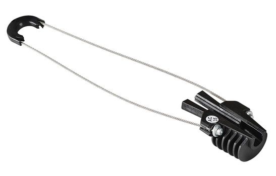 Предназначен для крепления оптического кабеля с внешним диэлектрическим силовым элементом (тросом) на пролетах до 110 м.
