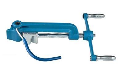 Инструмент для натяжения ленты имеет рычаг для захвата, фиксации ленты и продольный лентопряжный механизм. Обрезка ленты происходит за счет отжатия рычага поворотного ножа инструмента. Ручка ножа исполнена из прочной стали, покрыта резиновой оболочкой, что уменьшает вероятность соскальзывания руки во время монтажа и облегчает процесс обрезки ленты.