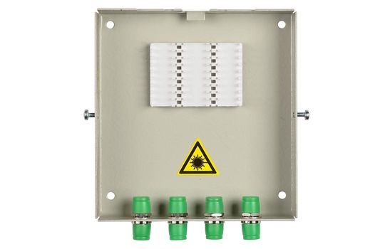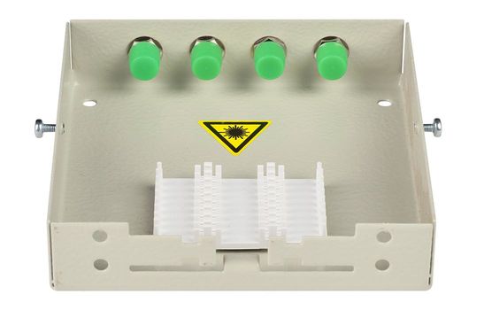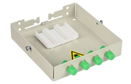 Оптические кабели разделываются и фиксируются в верхней части корпуса. Волокна свариваются с пигтейлами, КДЗС закрепляются в ложементе.