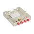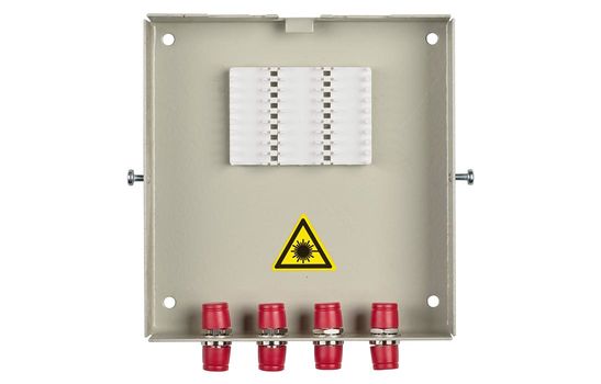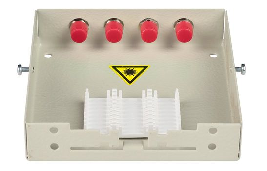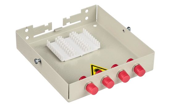 Оптические кабели разделываются и фиксируются в верхней части корпуса. Волокна свариваются с пигтейлами, КДЗС закрепляются в ложементе.