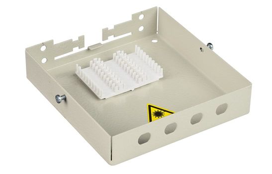 Оптические кабели разделываются и фиксируются в верхней части корпуса. Волокна свариваются с пигтейлами, КДЗС закрепляются в ложементе.
