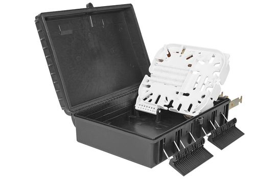 Выполнена из пластмассы и имеет пыле-брызгозащищенную тупиковую конструкцию (ввод ОК и вывод ШОС производится с одной стороны).