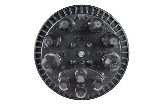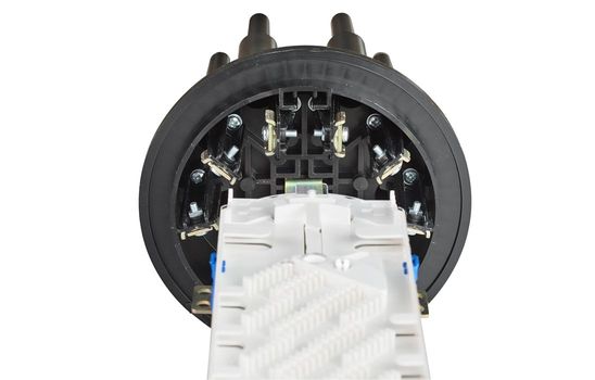 Герметизация вводов кабелей осуществляется с помощью термоусаживаемых трубок ТУТ. Круглые патрубки муфты изначально герметичны и имеют ступенчатую форму с разными диаметрами. Срезая патрубок в определенном месте можно подобрать отверстие максимально близкое к диаметру вводимого кабеля. Таким образом, исключается излишнее натяжение ТУТ после усадки при вводе относительно тонких кабелей. Все круглые патрубки муфты оснащены также индивидуальными узлами крепления ЦСЭ.