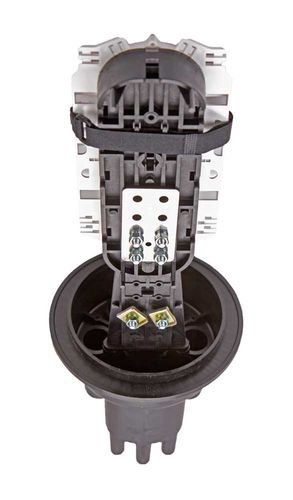 Тупиковая муфта МТОК-В3 предназначена для монтажа любого оптического кабеля (кроме подводных). Достигается это за счет использования специальных кабельных вводов, каждый из которых в свою очередь охватывает определенную группу кабелей. В муфте предусмотрен овальный ввод для транзитной петли оптических модулей без разрезания. Выкладка петли модулей осуществляется на лотке с противоположной стороны от кассет.