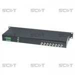 Активный приёмник видеосигналов на 8 каналов с автоматической регулировкой усиления. Расстояние передачи (цв.): до 1500м с пассивным передатчиком, до 2000м с активным передатчиком. Вх. - Клм.(видео)х8/Клм.(RS485)/Роз.2,1х5мм(DC12V); вых. - BNCx8/Клм.(RS485). Встроенная защита от скачков напряжения (TVS). Возможны более точные настройки по интерфейсу RS485: усиление сигнала (в ручном режиме), фильтр высокочастотных помех, цветность, полярность видеосигнала. Возможно подключение до 32-х TPA008A в линии по RS485. В комплекте БП DC12V(1А) - 1шт., ПДУ (IR01) - 1шт. Размеры (ШxВxГ): 483x183x44мм (1U). Рабочая температура -40...+55°C.