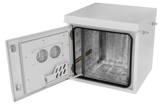 Дверь шкафа двухслойная вентилируемая, внутри установлен фильтр, также имеются места для установки вентиляторного модуля.
